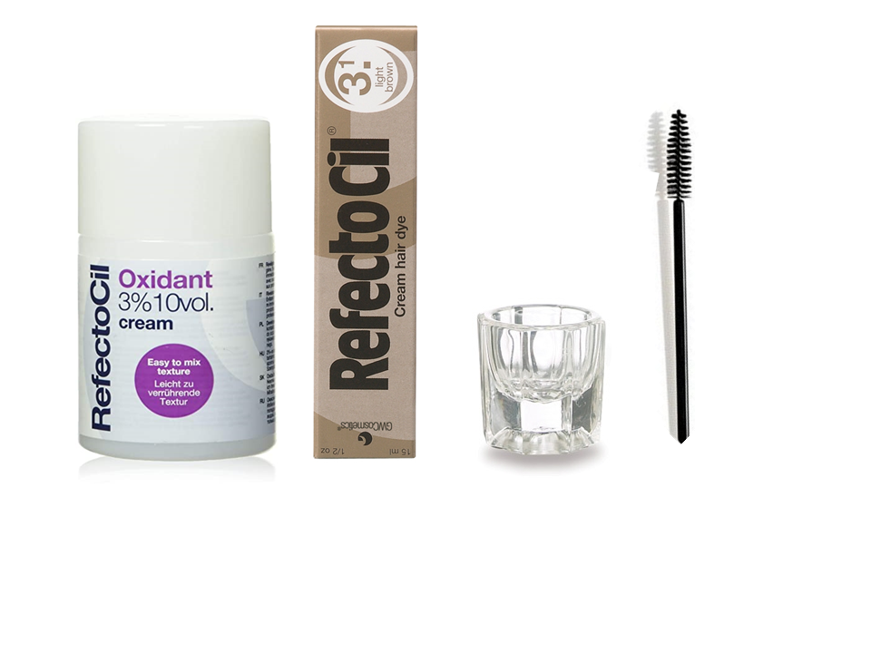 REFECTOCIL CREAM SET- Light Brown Lash / Brow Hair Dye + Cream Oxidant 3% 3.38 oz + Mixing Brush + Mixing Dish