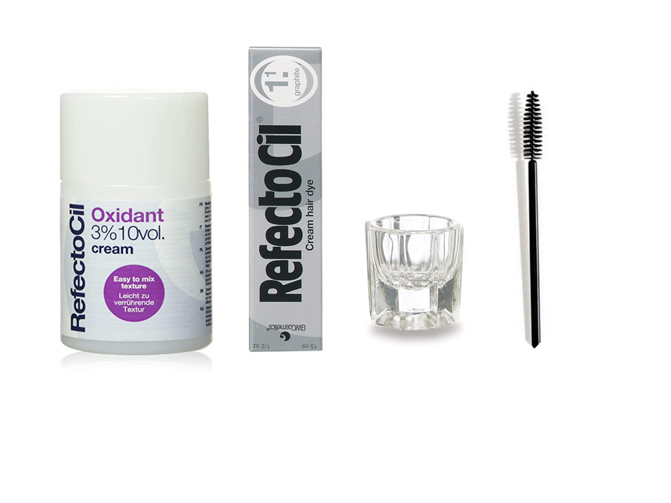 REFECTOCIL CREAM SET- Graphite Lash / Brow Hair Dye + Cream Oxidant 3% 3.38 oz + Mixing Brush + Mixing Dish