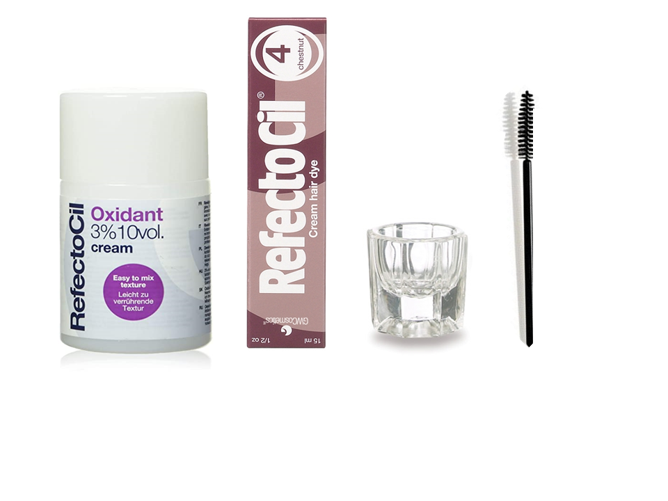 REFECTOCIL CREAM SET- Chestnut Lash / Brow Cream Hair Dye + Cream Oxidant 3% 3.38 oz + Mixing Brush + Mixing Dish
