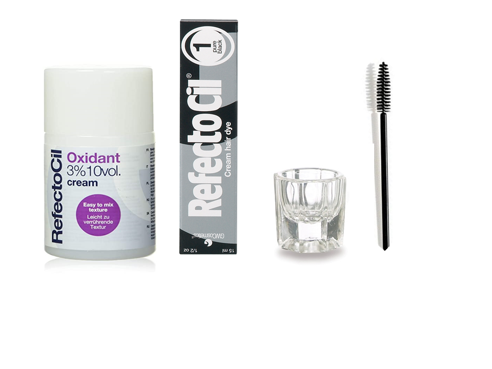 REFECTOCIL CREAM SET- Pure Black Lash / Brow Hair Dye + Cream Oxidant 3% 3.38 oz + Mixing Brush + Mixing Dish