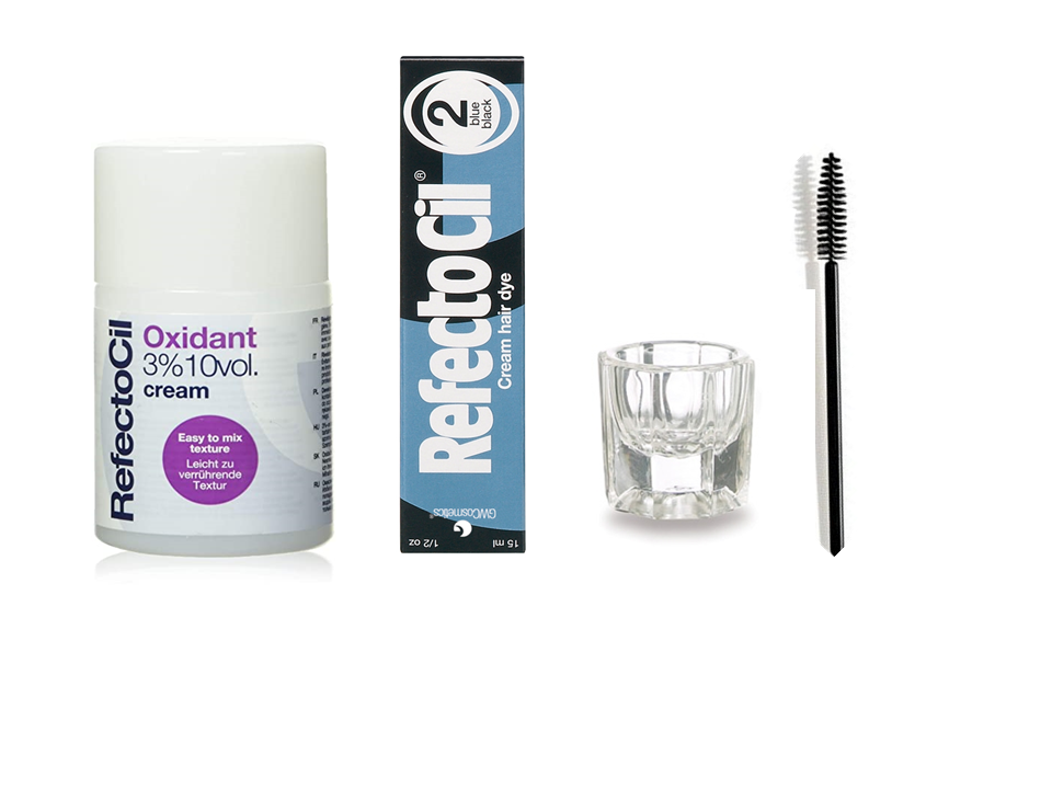 REFECTOCIL CREAM SET- Blue Black Lash / Brow Hair Dye + Cream Oxidant 3% 3.38 oz + Mixing Brush + Mixing Dish