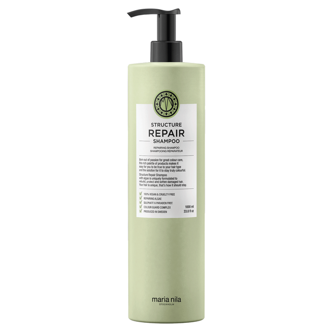 STRUCTURE REPAIR uses strengthening ingredients from the bottom of the sea in the form of algae that soften and repair damaged and tired hair. MARIA NILA CARE & STYLE is a six part colour protecting haircare range. Because different hair types need different kinds of treatments, each part of the range contains a special ingredient that adds unique properties, making the product perfect for your particular hair type. All products are sulphate and paraben free and made out of 100% vegan ingredients.