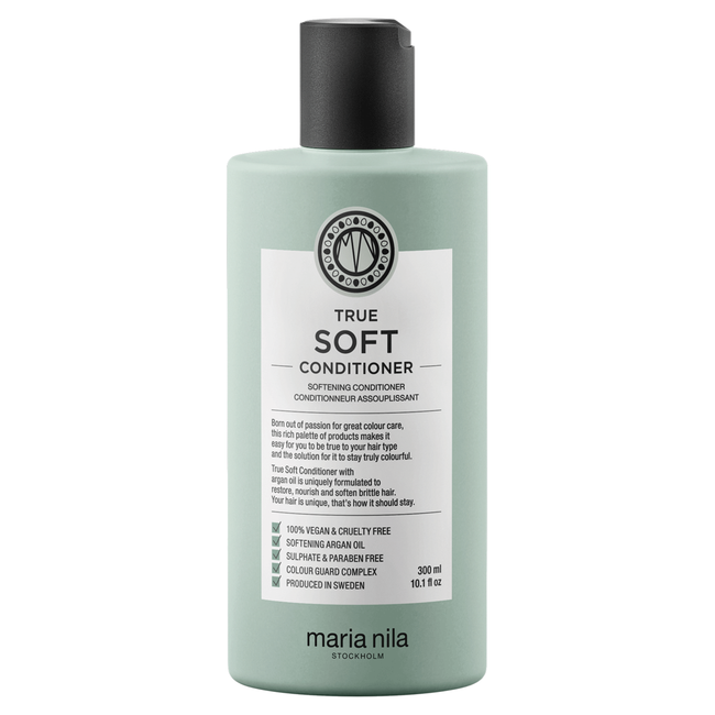TRUE SOFT is based on argan oil, which remoisturises and revitalises dry and brittle hair. Reduce frizz and fight static electricity with Maria Nila True Soft Conditioner. A gentle formula for dry hair that softens, moisturises and strengthens. Contains smoothing argan oil and colour guard complex, which protect hair and reduce the loss of colour associated with washing, heat styling, UV rays and free radicals.